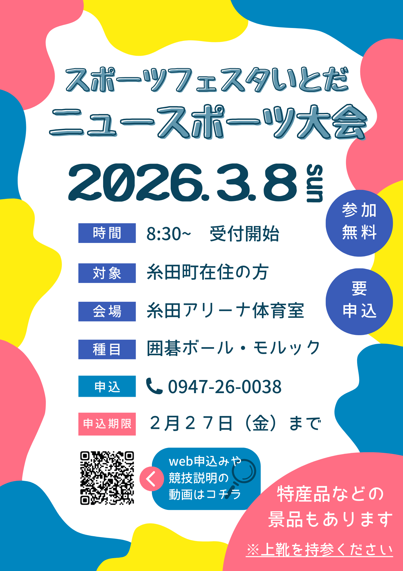 参加申込書は、糸田町町民会館(図書館がある建物)にもあります。 平日の8:30~17:15の間に申し込みください。 問合先:糸田町教育委員会 教務課 社会教育係:0947-26-0038